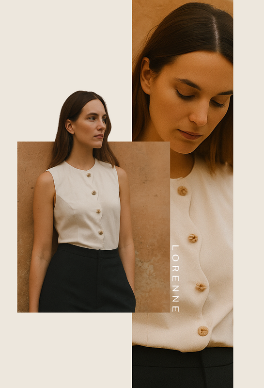 London-born quiet luxury. We start at the pattern table, refining millimetres on real bodies until posture falls into place. Fabrics chosen for weight and drape; a calm palette — navy, black, ivory, champagne. A tight edit of blazers, wide-leg trousers, satin tops and midi dresses: honest cuts, considered comfort, fewer pieces that do more.