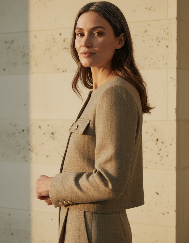 London-born quiet luxury. We start at the pattern table, refining millimetres on real bodies until posture falls into place. Fabrics chosen for weight and drape; a calm palette — navy, black, ivory, champagne. A tight edit of blazers, wide-leg trousers, satin tops and midi dresses: honest cuts, considered comfort, fewer pieces that do more.